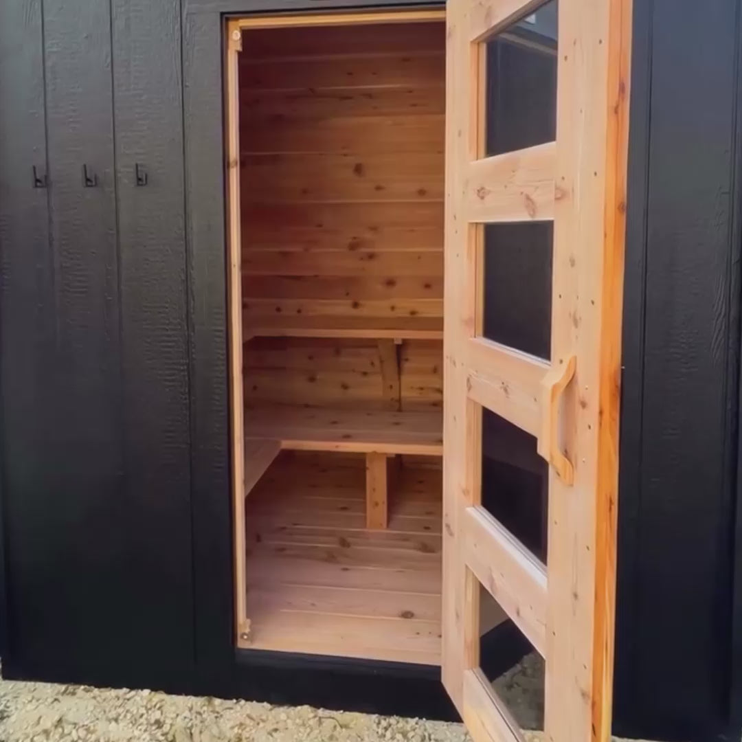 Utilizing a commercial grade non-slip rubber flooring ensures complete sealing from water build up and insects entering the sauna, resulting in a longer-lasting and protected sauna from the ground up. Cedar or tile flooring options are also offered.